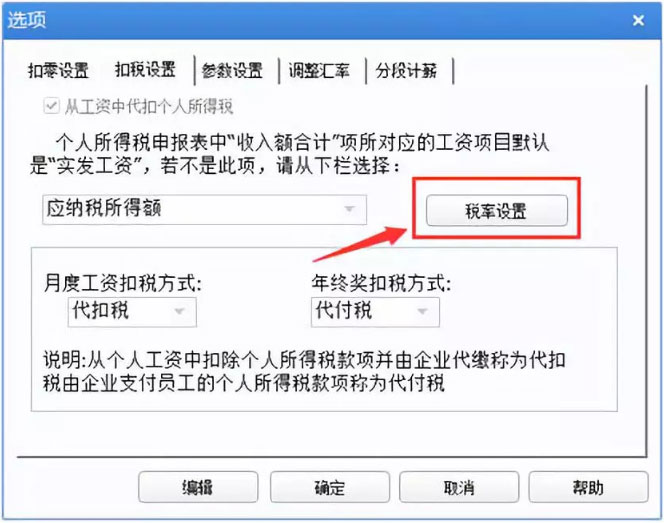 1、在薪資管理-設(shè)置-選項(xiàng)-扣稅設(shè)置中,點(diǎn)擊稅率設(shè)置,調(diào)整基數(shù)和稅率表。