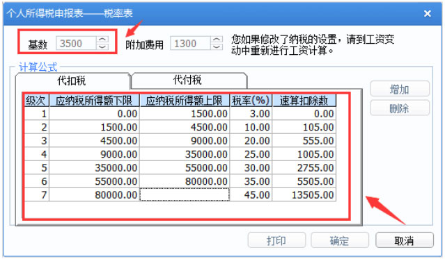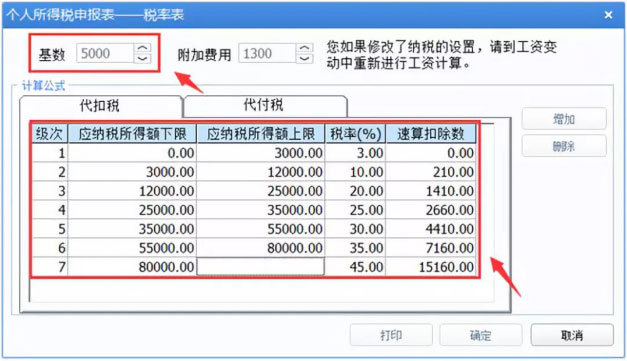 2、調(diào)整參考如下:1>調(diào)整基數(shù)為5000;2>調(diào)整各級(jí)次的應(yīng)納稅所得額上、下限及速算扣除數(shù)。